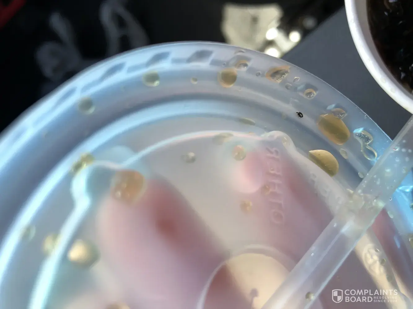 I went to the Safeway gas station located at 40 Shining Willow Way in La Plata, MD 20646 to get a cherry coke before returning to work at Charles Co. Circuit Court. I paid for my drink and took a few sips while returning to my car. I went back to the courthouse parking lot and parked my car and took another sip. I felt something on my tongue so I immediately pulled it out of my mouth and took a picture (attached below). I took the lid off of the cup and noticed that there was more black stuff on the inside of the lid. I'm not sure if this is residue from the machine but it's obvious that they need to clean the fountain drink machine before anyone else has this experience. I expect an email about this matter. kayleehumphrey11 @gmail.com