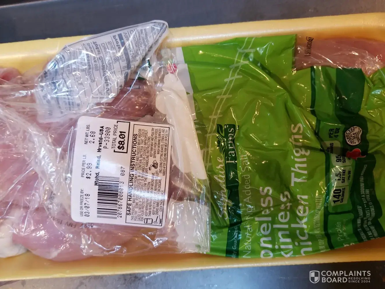 Today is August 29th I went into the Safeway store number1519 Proceeding to buy some of their signature boneless skinless thighs out of the meat case when up paid for my groceries got home started to prepare dinner for my son and my grand kids and notice that the fresh chicken thighs had a sell by date of 3/7/2018 and today day is 3/29/2018 I can't even tell you how disappointed and upset I was that I was about to feed this to my family and my grandson's it could a potentially made everybody in my house become sick this is unacceptable I shop there all the time but don't know if I will be shopping your meat department anymore to have an expired date that's a fresh product and chicken out in your meat case is really unacceptable I tried several times to call the store back with no answering of the phone My name is Jerry Barker I sincerely hope that you guys take this comment seriously. If you need to contact me my email is. [protected]@live.com