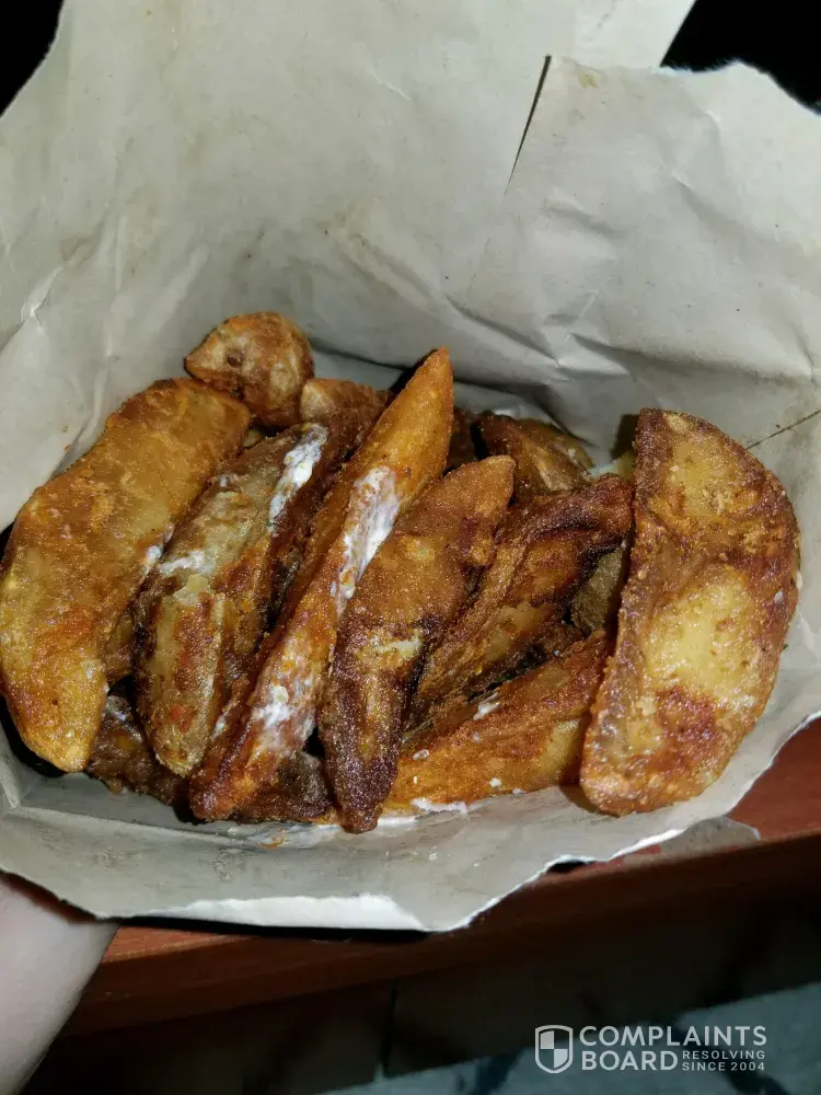I ordered a pound of potato wedges. I opened them 10 minutes later when I got home and then we're hours past when they could have been sold. Half of them were black, they were dried up so bad they were shriveled. There wasn't anything in there to salvage. I'm top of that I found to long black hairs in my bag. I had attempted to eat them, before finding the hairs, and they were so gross.
