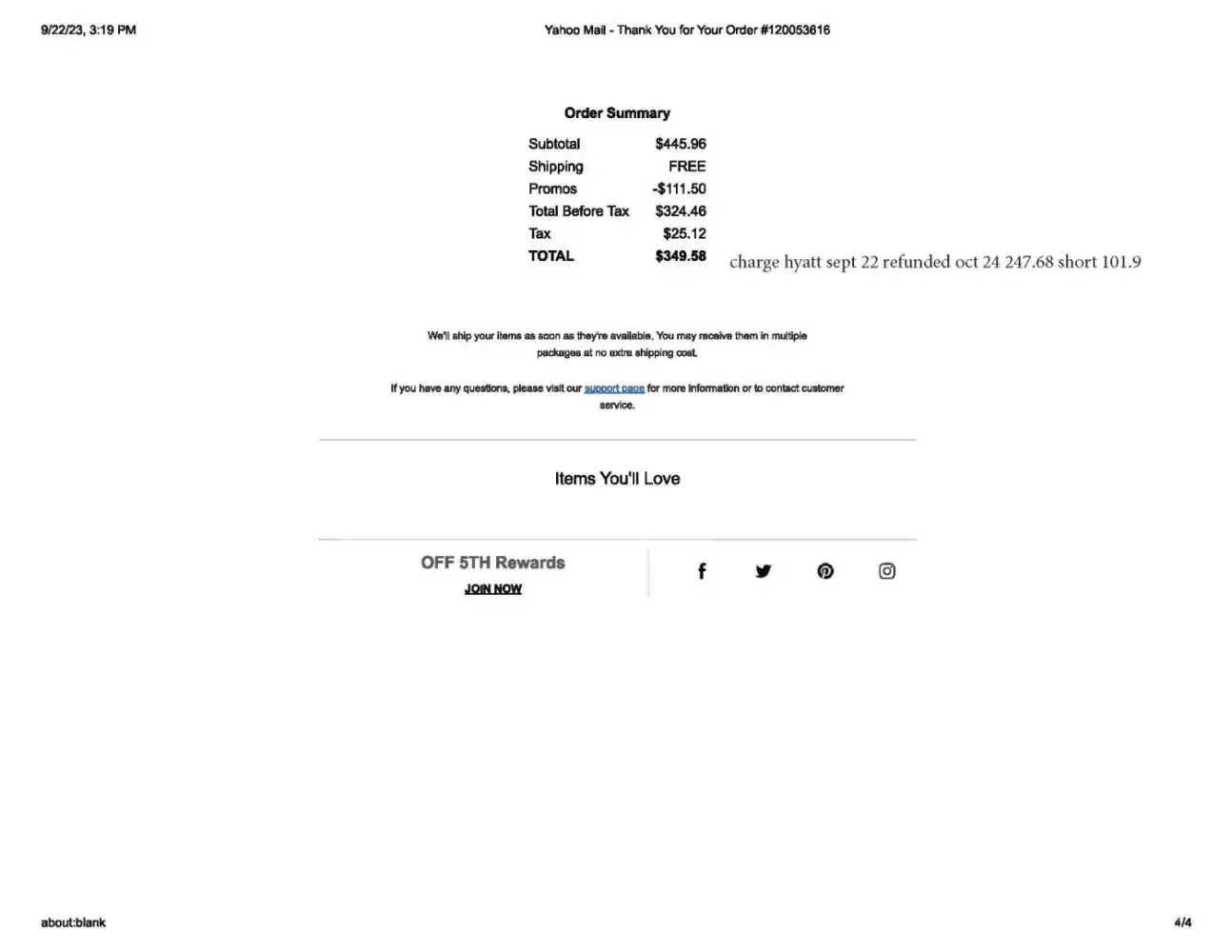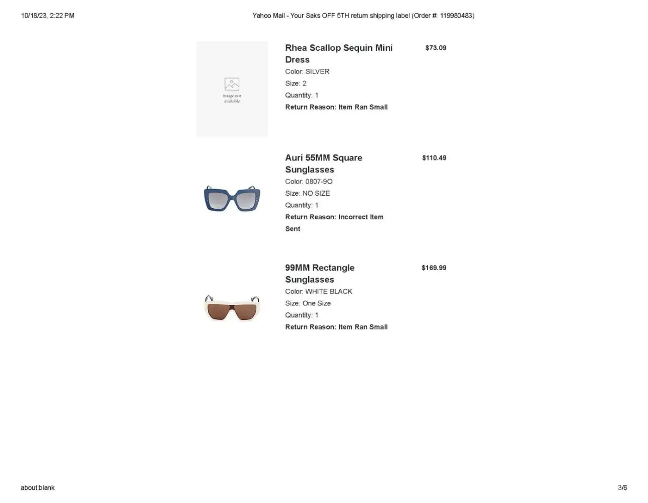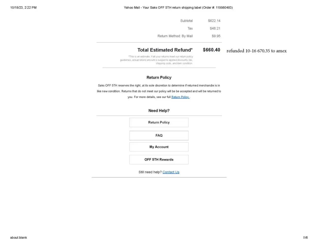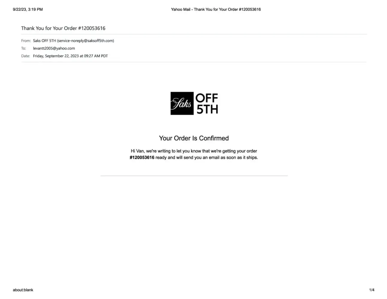 I put an order with Saks off 5th (order #[protected]) order confirmed 7th October 2023