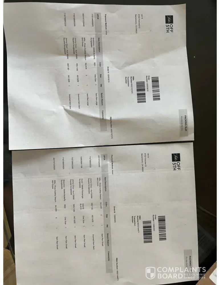 Read full complaintSaks OFF 5th complaints: history and resolution overview