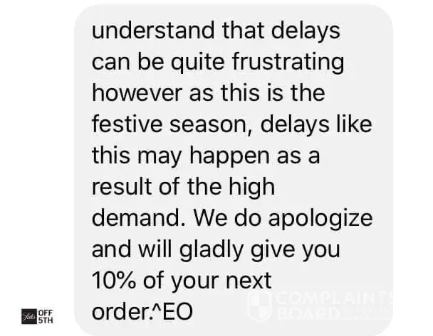 Saks OFF 5th Product not shipped. Complete ignorance by customer service