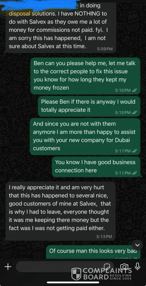 In conclusion, I would not recommend dealing with SALVEX. They have caused me a lot of stress and frustration and I do not want anyone else to have to go through the same thing.
