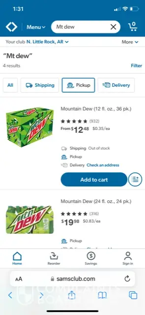 On the internet 36 ct. 12 oz can of Mt. Dew is listed as $12.48/case. I selected my store (8266) and selected pick-up. It also showed "out of stock". I went to the store and there were MANY cases on the floor. The price shown was $12.98/case. As you can clearly see in the attached photo, I chose my store and "pick up". I did not order on-line. I asked the check-out clerk if Sam's price matches and was told yes. It did not take in the computer so she called for a manager. She declined to price match. Granted, it's only $.50/case but that's not the point. If there is a price shown (in this case the lower of the two), that price should be honored.