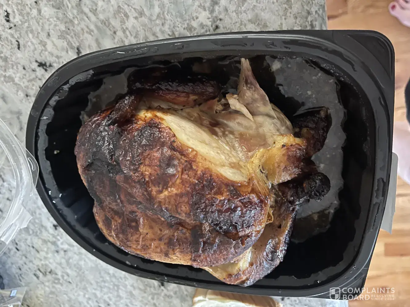 It would be nice if you are going to charge $4.98 for a rotisserie chicken then the buyer would get a whole chicken. My husband bought one today among the $362.32 he spent and the chicken was missing a whole quarter. Someone had a thigh and leg off. Unbelievable!