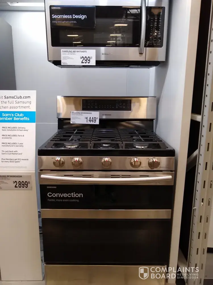 I went to the San Diego Sam's Club to inquire about a Samsung stove, item NX58M6850SS @ $1, 449. and microwave item ME18H704SFS @ $299.87. It stated that it could be ordered online, which it cannot and not at that price. I spoke to 2 store managers who basically stated that they couldn't sale the items, it must be done online at the online price. They also said that it was the company policy to NOT honor the sale price, that it was "just a promotion"!