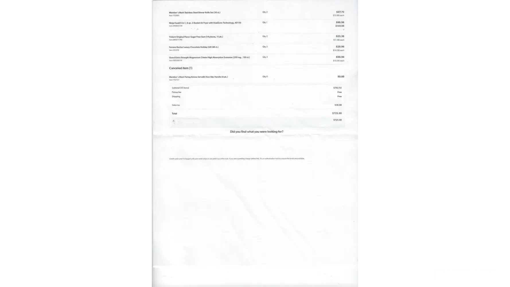 On 11-5-23 I ordered from Sam's and only received part of the order. I received a statement for it on Saturday. Order # [protected]. I have called 4 times and they said to wait for 72 hours then the last time 48 hours and I haven't heard a word from anyone. I had planned to order on Black Friday but, afraid I would be billed and not received my order. I still would like to receive my order.
