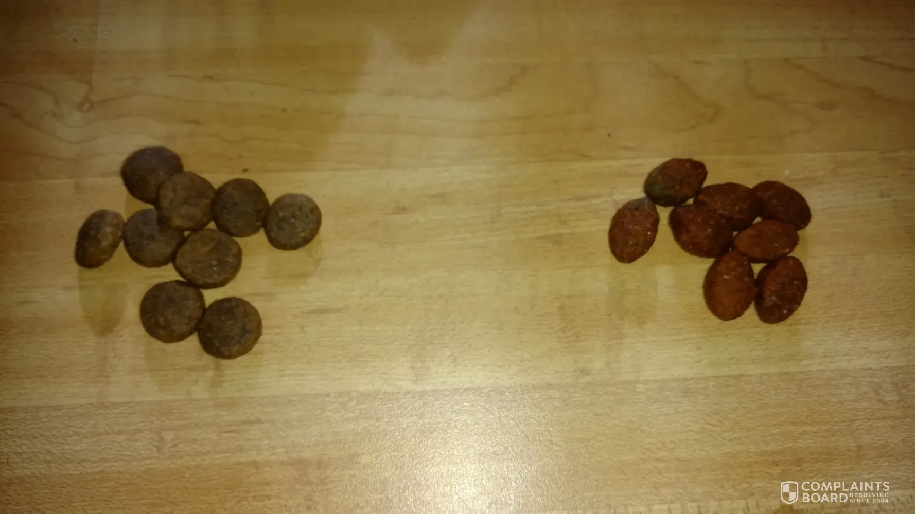 I buy members mark salmon and pea grain free dog food have been for about yr or so. Been finding other kinds of dog food in it. It a redish orange color. It has dyes in it. Found bout 40 in last bag new bag also has some in it. R u changing it or is this something that shouldn't b in it. Picture has grain free on right and what I found on left...