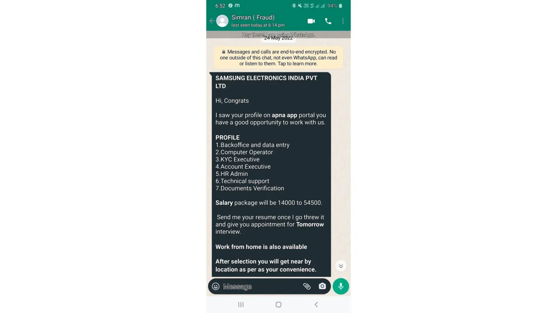 Fake job scam
