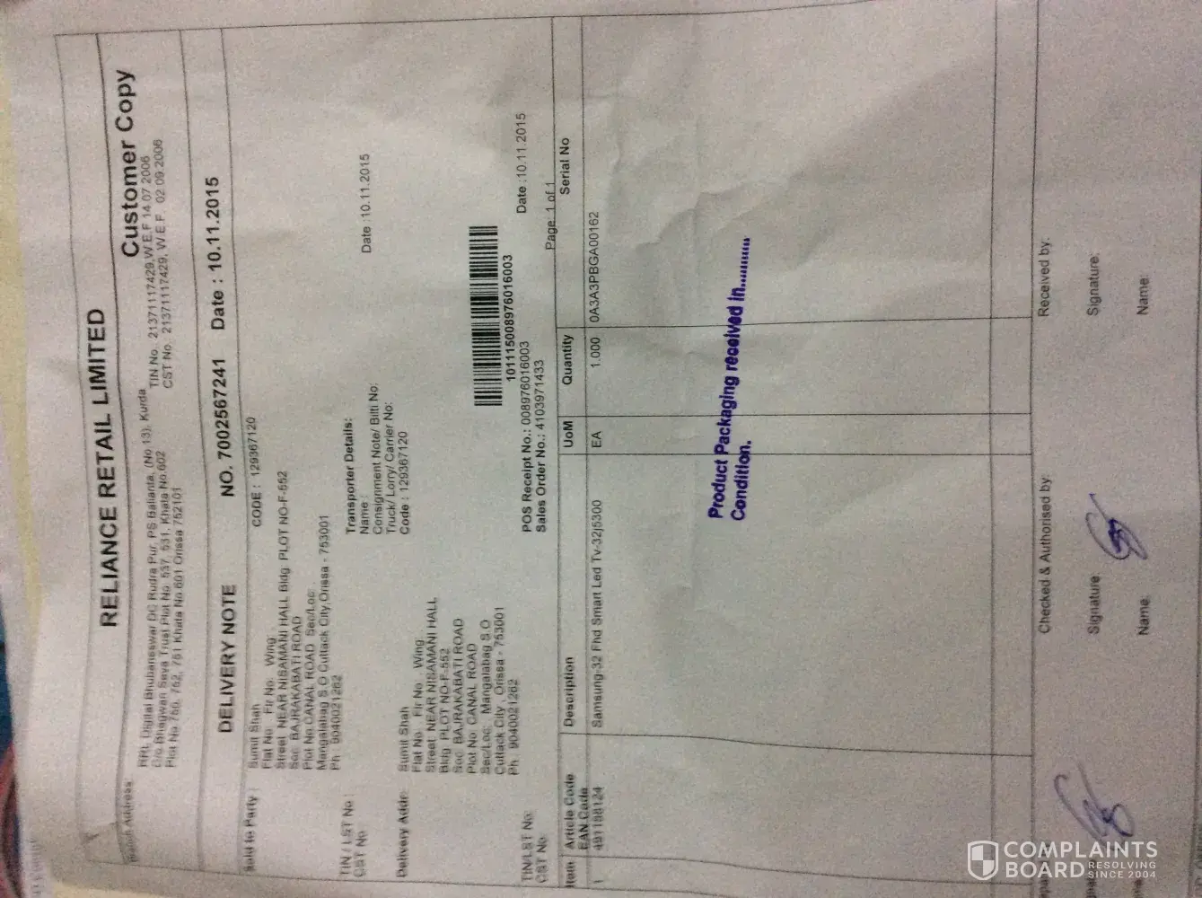 after a week the TV got replaced but we got a shock that the invoice now had the value of 31000. upon requesting clarification, the center told us speak to the delivery person and the delivery person asked us to speak to the center.