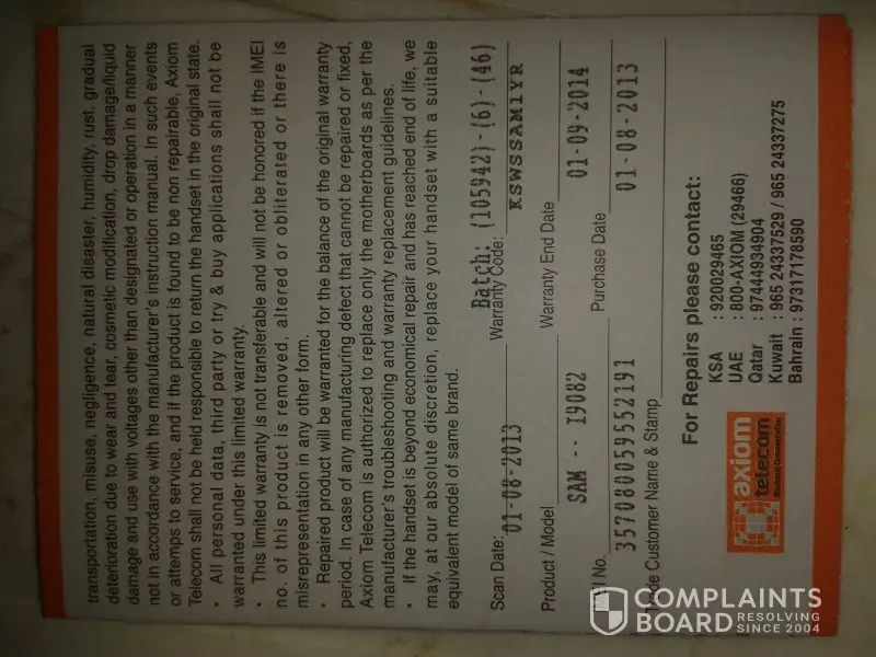 with an invoice date of 9/11/2013. After a soft use I faced shut down for the mobile during calls and the bad quality of the screen color . I decided to take it