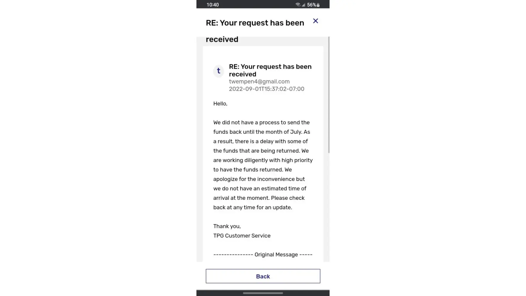 Desired outcome: I'd appreciate a response with a resolution.