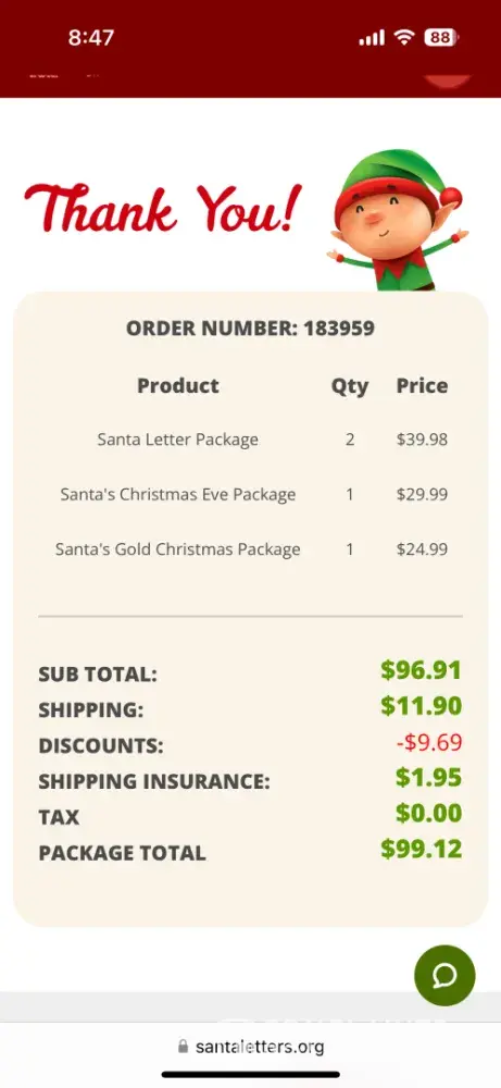 So, I thought I'd give this Santa's Letter Factory a try, you know, to make my kid's Christmas extra special. Well, turns out it's a total scam! I went ahead and placed my order, even splurged on the fancy upgrade, about three weeks ago. But guess what? No confirmation, no nothing. And get this, my payment went through just fine, like, the same day I made the order. But did I hear back from them? Nope. Nada.
