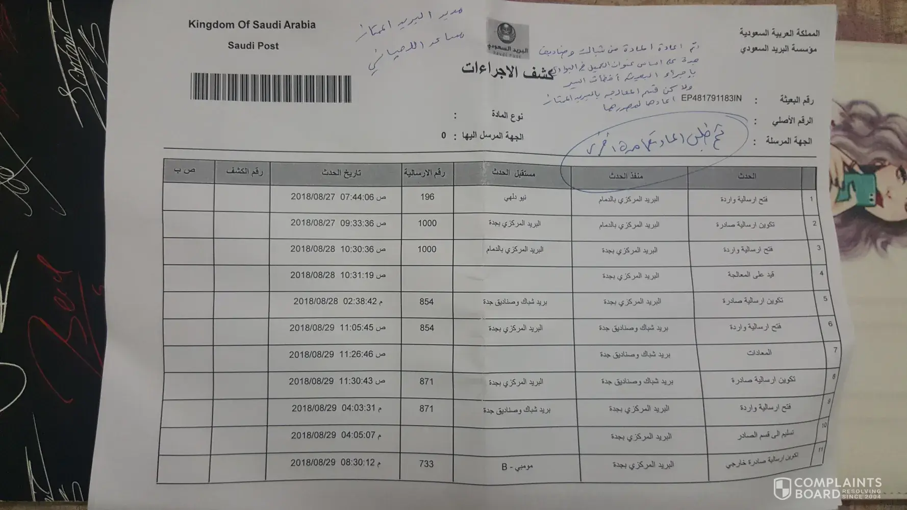 Unfortunately, I lost my tracking number and no one at Saudi Post can check without the tracking number.