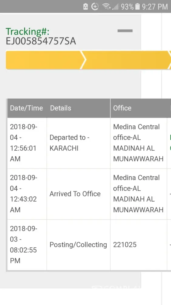 I had posted 20 kg parcell at madinna office (221025) near gate 6 of harram on 03 sep 2018 with tracking id ej005854757sa to hassan abdal pakistan. Its locaton is still madinna on the web site after 10 days. Where as it should have reached by now. Please check and inform me why it is late. Aosaf hussain shah, hassan abdal dist attock, punjab, tel # +[protected], +[protected], email [protected]@gmail.com