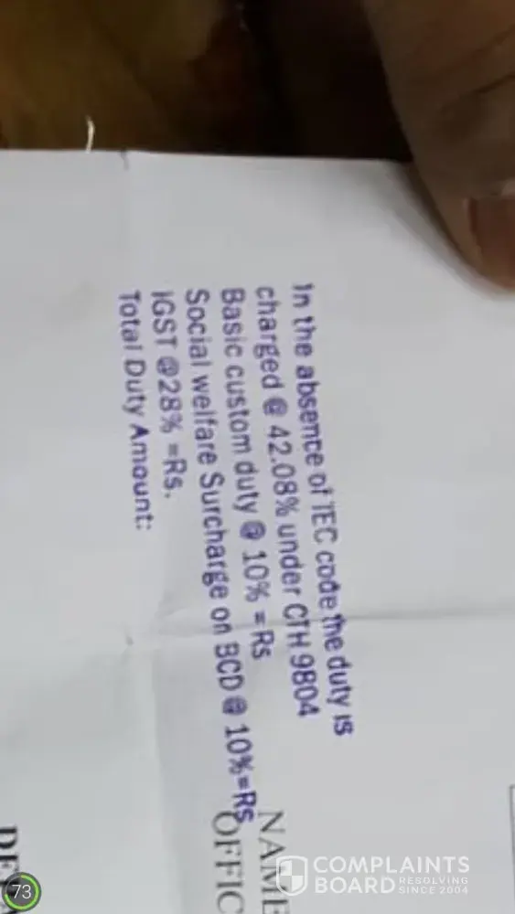 According to my shipment # EK033351693SA, May I inform to you yesterday I was received my shipment from Saudi Post to our local post (Bhiwandi Post). But the problem is custome duty fine charges 42% due to absent of TEC Code under CTH 9804. So, we refused to collect our shipment due to 42% custome charge (around 1150 Indian rupees). We already paid 250 SR in the Saudi Post.