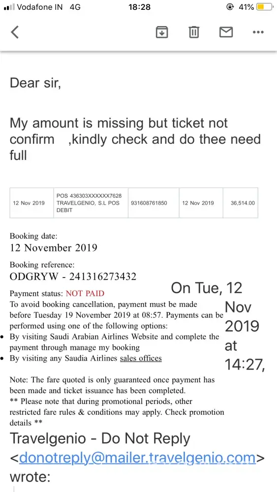 My amount is missing but ticket not confirm, kindly check and do thee need full