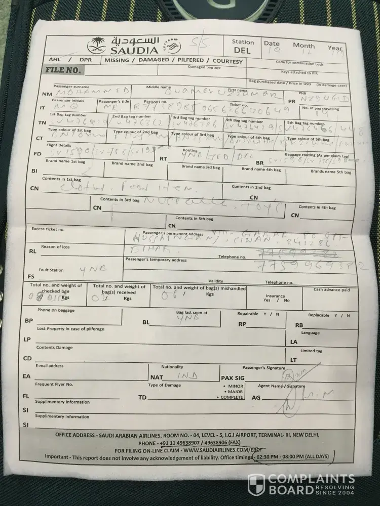 6 baggage of my family were found missing at from yanbu to delhi. customer care are not responding to call