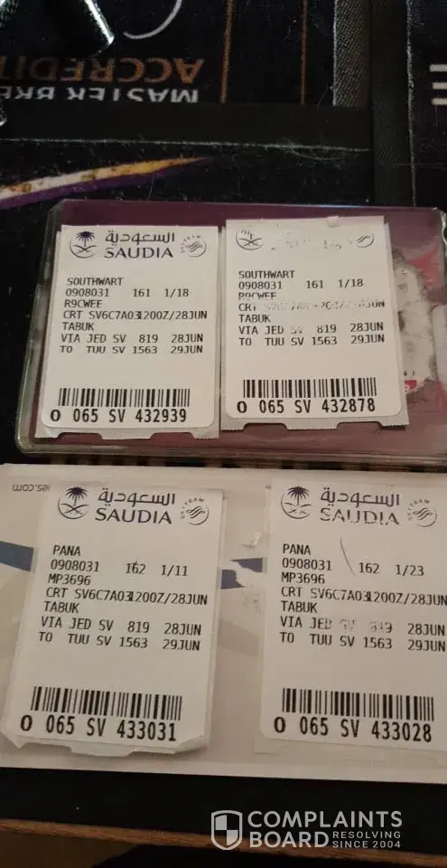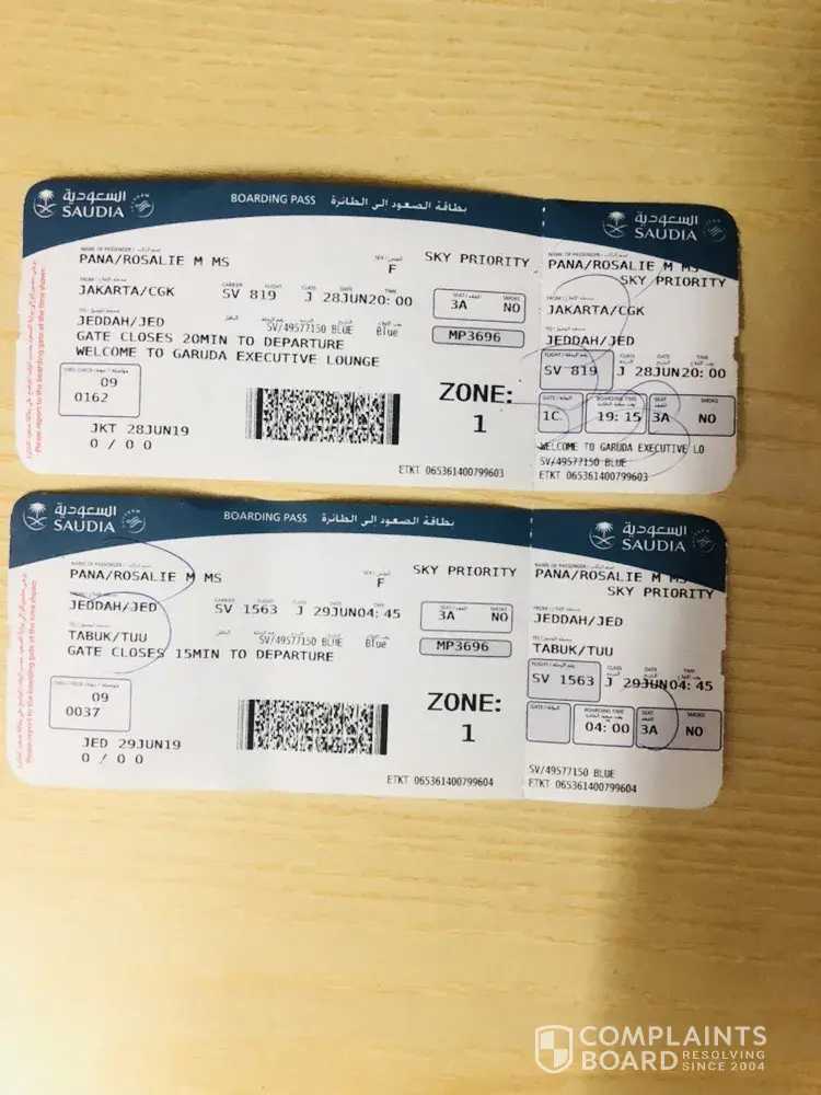 Upon my arrival to the check in desk 3 hours before departute the airline declined my booking for no obvious reson and I was asked to book an other ticket on the same flight as they said that my ticket was not issued by the airline Carrier Saudi Airlines. So I had to pay the total amount of SAR 2048 in cash to book another tickey on the same flight. Ticket number ETKT [protected]. Booking refrence: AMADEUS/O3R7W8-[protected]. AIRLINE: SV/O3R7W8-240327073208.