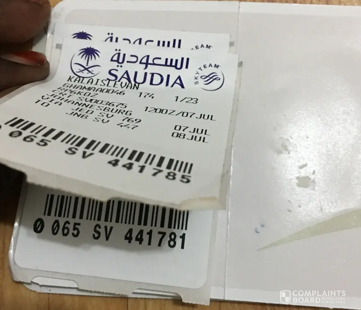 I travel at Saudia Airlines on 7th july from Chennai (MAA) to Johannesburg (JNB)