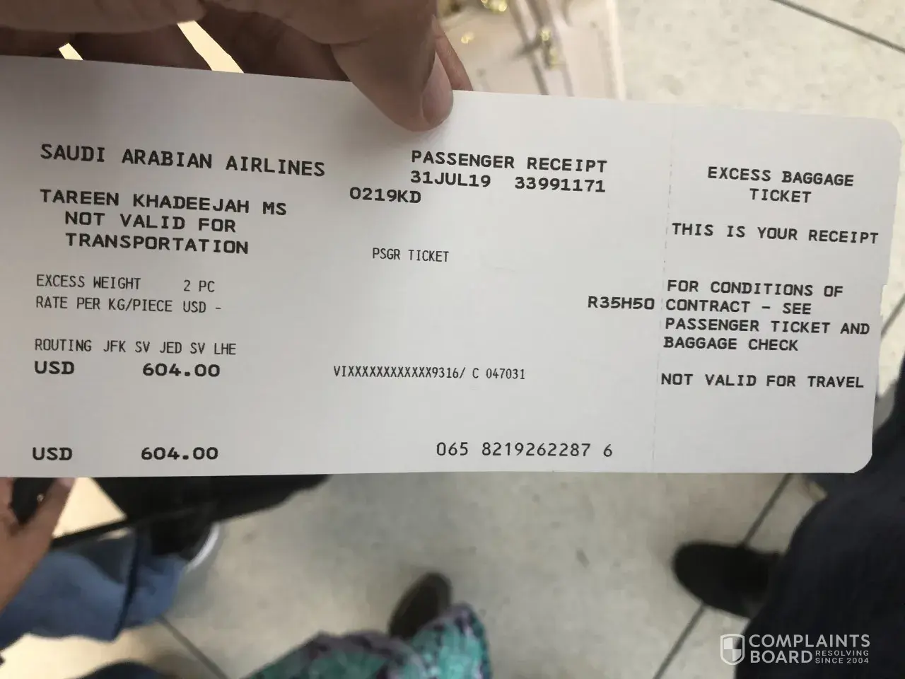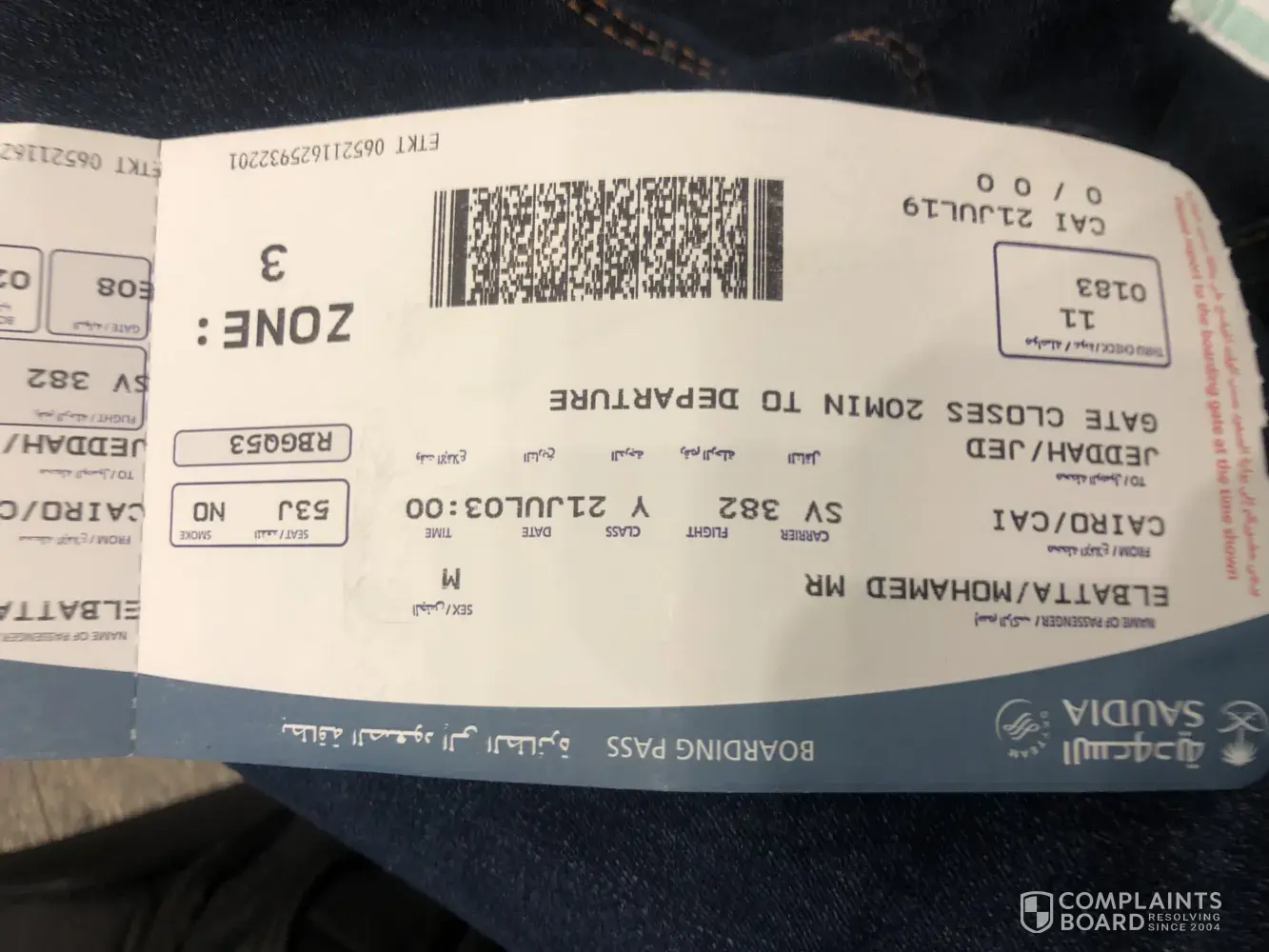 ISSUING AIRLINE : SAUDI ARABIAN AIRLINES