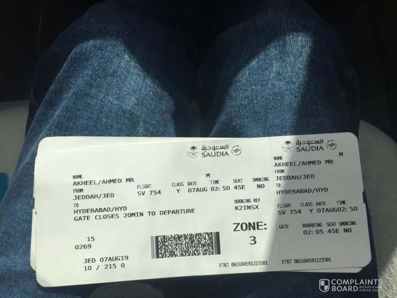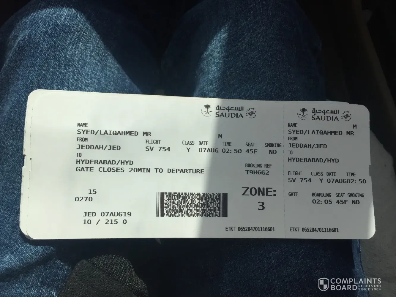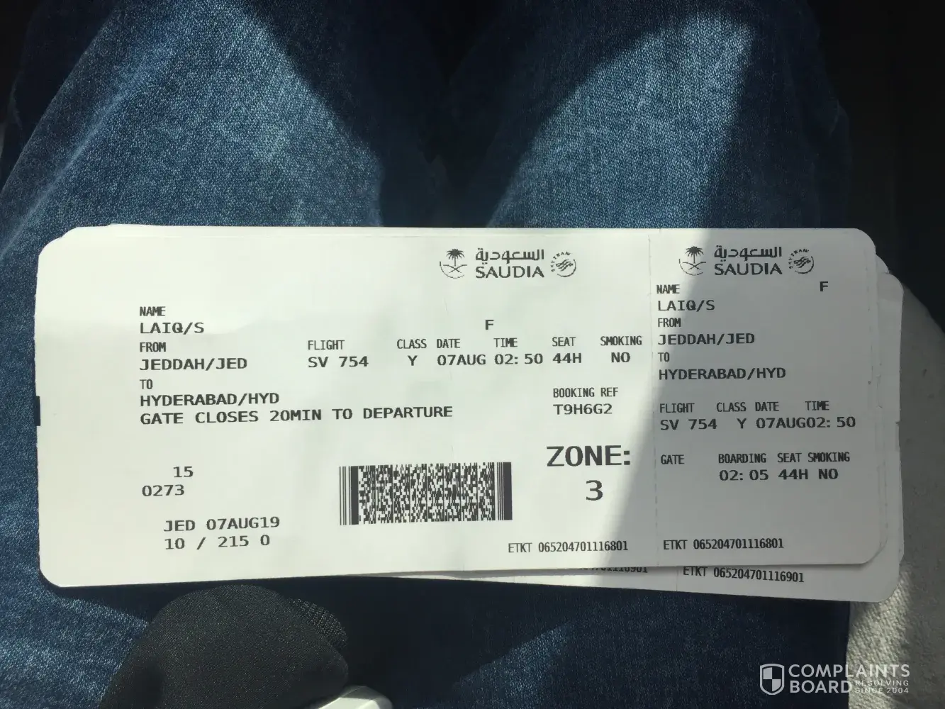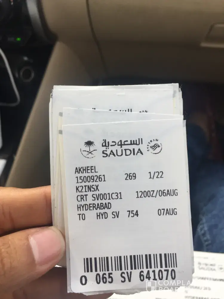 With due deference and reverance I would like to inform you that we had booked Saudi Airline ticket before 2 months bearing fligt # SV 754 from Jeddah to Hyderabad scheduled on 7th, Aug, 2019 at 2:50 am.