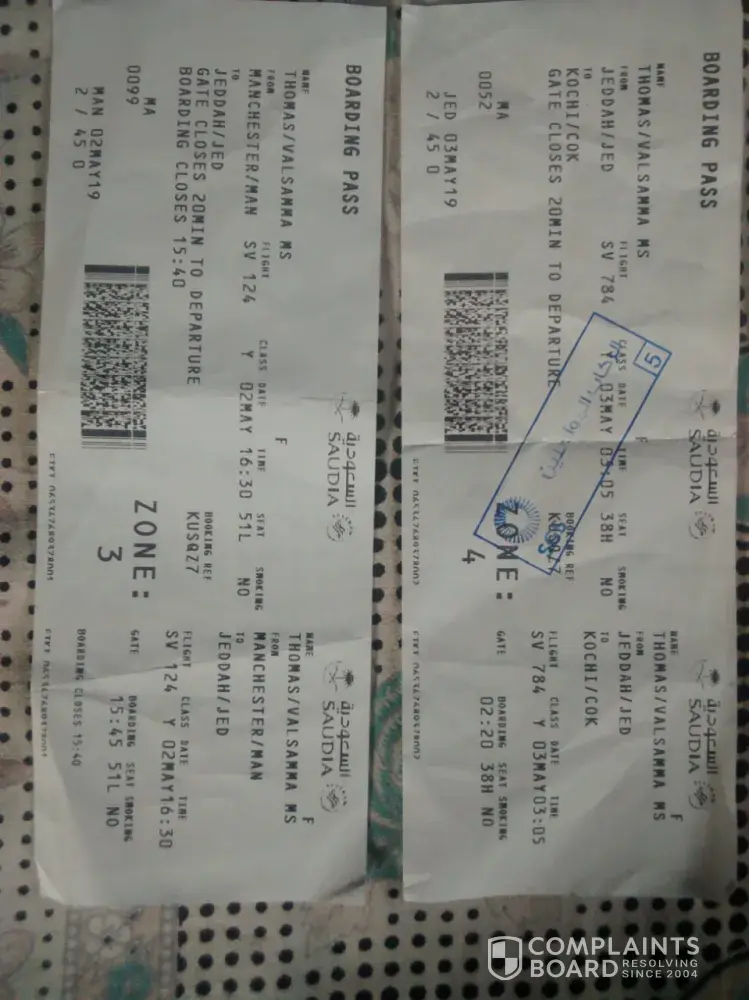 Me and my husband arrived Riyadh airport on 04/05/2019 at 21:15h (SV775) coming from Kochi.