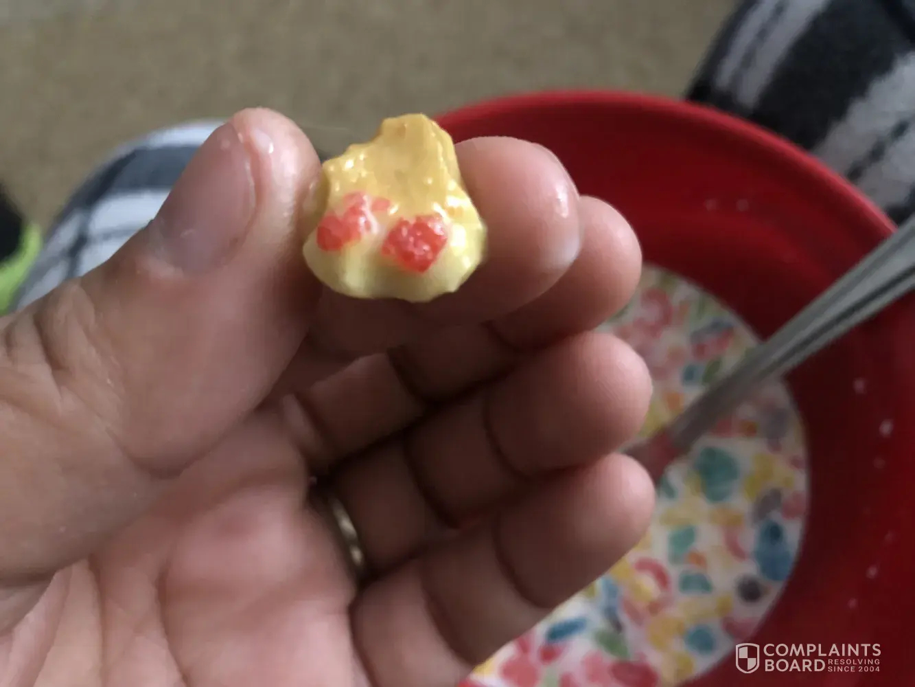 I open new box of fruity diamonds for my autistic son and he was schoking on a big hard item that was in the bus the size of a rock and extremely hard we found more then one and I believe this major issue my son could had been extremely hurt if we did not act fast to help him I believe this isssue needs to be looked at ASAP as other parents and children can come across this issue again