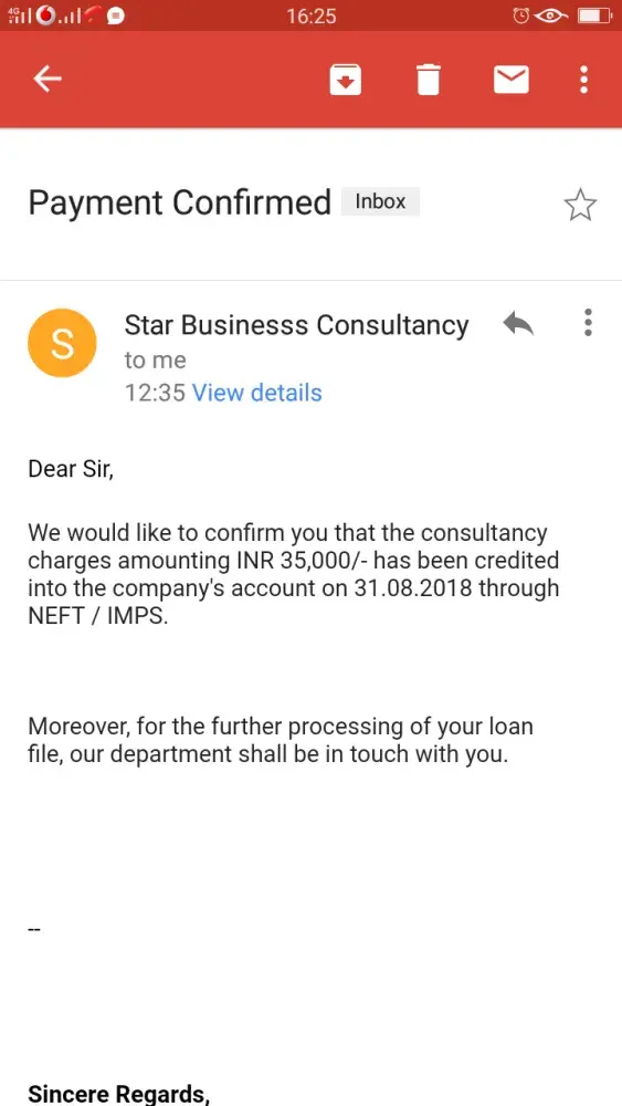 Its a fraud finance company. First the authority mayur jain told within 1 week loan will be sanctioned and told u have to only pay 2500 for login id, then they told to pay 35000 consultancy charges, then they kept on telling send this paper that paper which was not told us to prior for more than 1 month, and finally we withdraw it, they have only returned 28000. So they have finally eaten up our 9500 rs. And no authority or peroson is receiving call or replying for mail. Its a fraud company.
