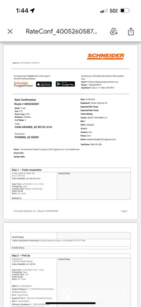 I booked a load off the freight power app 3 times ([protected]) they cancelled the load twice and put it back on the app at same price of 600.00 I booked it for the third time got all the way to the trailer pickup and get a saying that there was a mistake on the pricing I was told by multiple people that the load was still active even when I was at the trailer pickup location but come to find out that it’s not because management made a mistake on the price I shouldn’t suffer for the mistake on your end and the gentleman Paul stang was very rude to me and not willing to remedy the situation very bad customer service on freightpower reps
