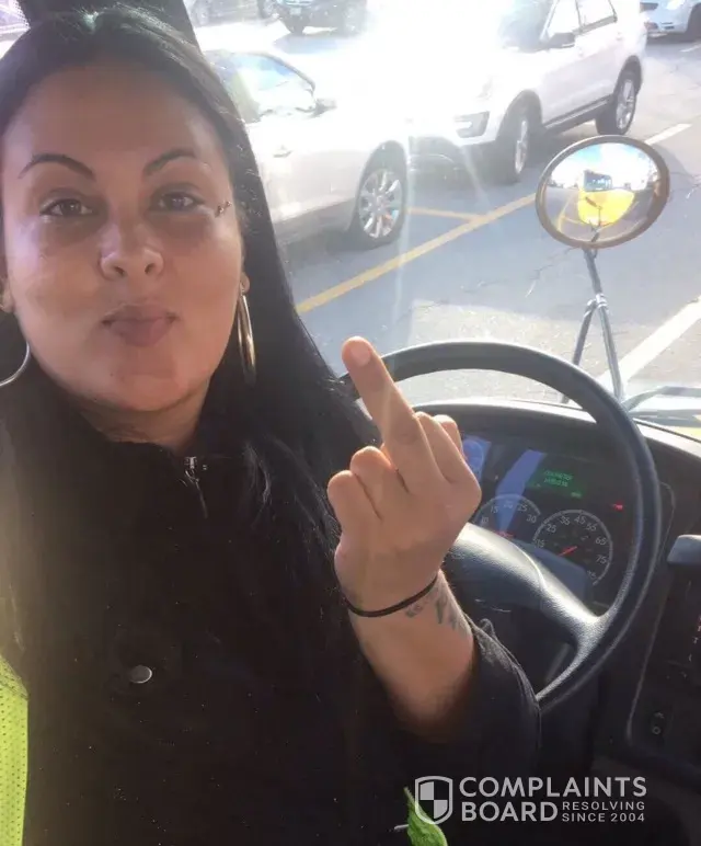 Taynicha Perez is a unprofessional bus driver for the public school system in Rhode Island. She is disagreeable with the students and mothers and fathers. Shame! Taynicha Perez should not be driving any children. She is nothing but a bad example. I have complain about her . As has many others. You can see she is on a public school bus giving my son her middle finger.