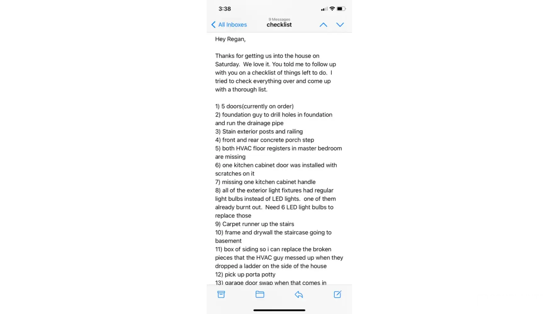 Desired outcome: I would like Schumacher homes to repair any water damage and install the proper backerboard so that we can continue with installing the shower walls.