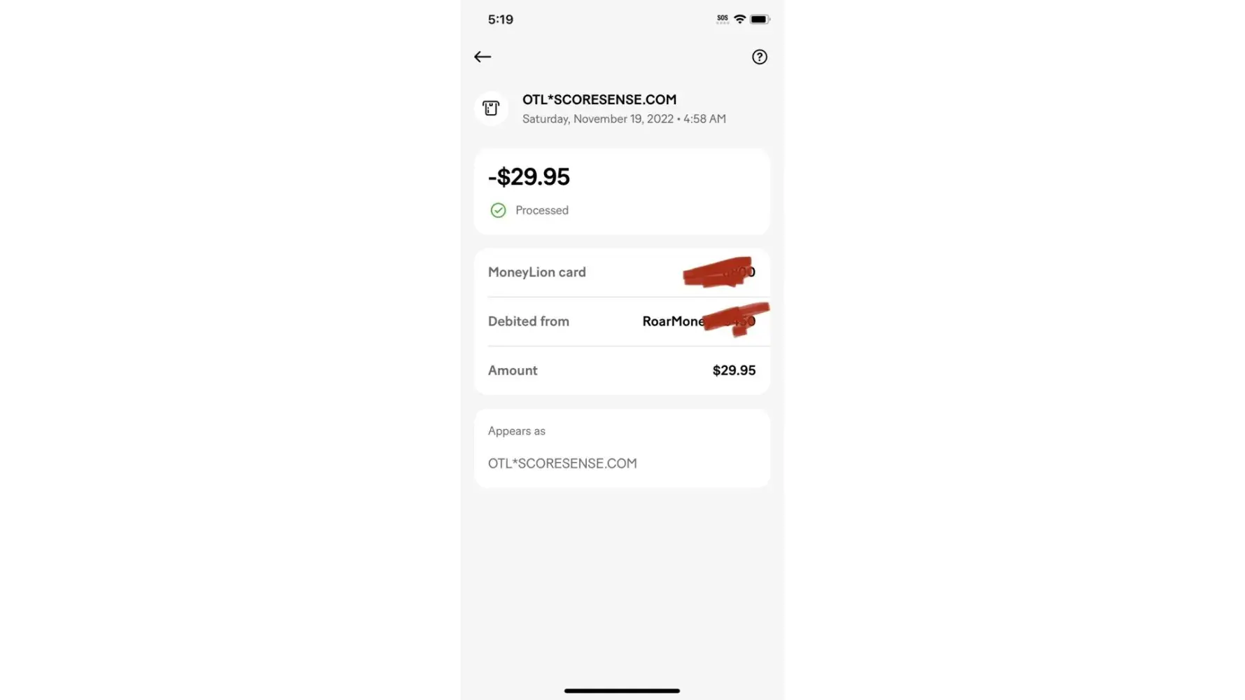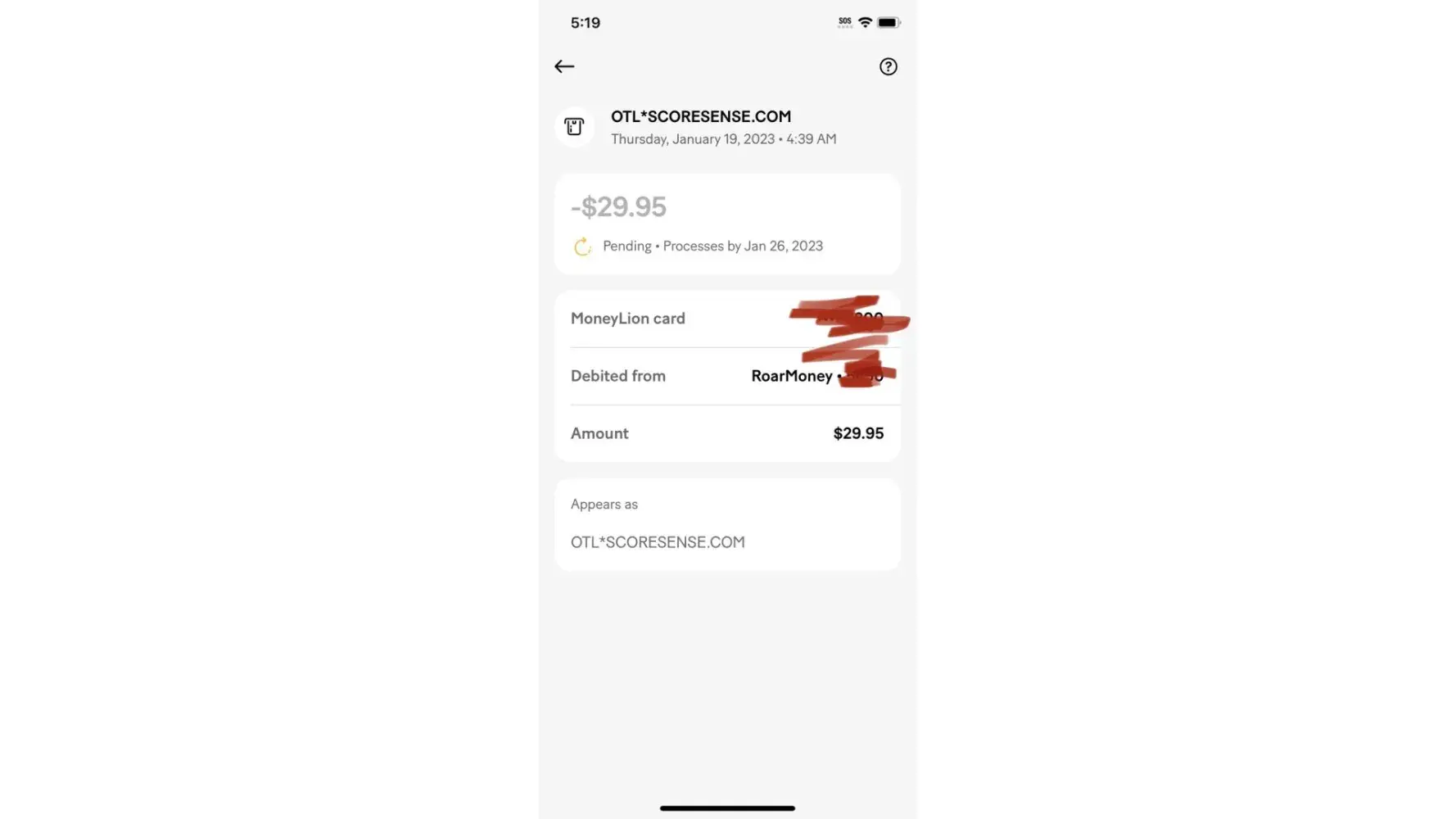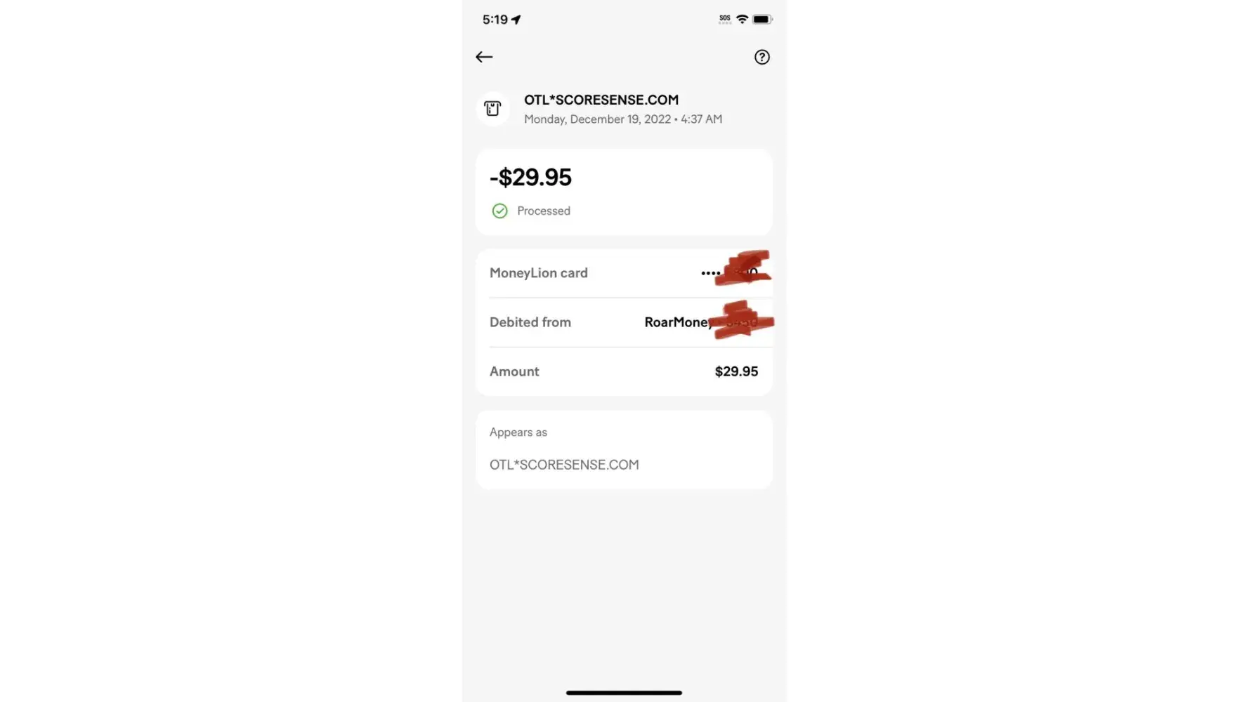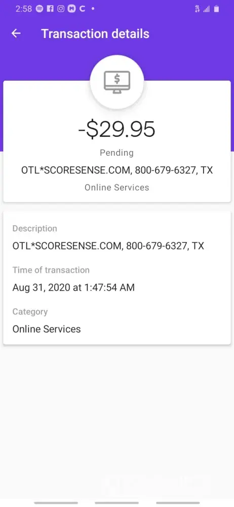 i recently noticed $29.00 missing from my SSDI debit card. i called social security and they helped me find out what happened and when. it occured july 10th this month and it was a charge to my account by otlscoresense.com. before 7/19/2023 i have never heard of this company and still dont even know what they do. as for joining a membership, i do not know anything about it and never autherized any money to go to them. no $1.00 starter membership. and honestly never even heard of them let alone consider joining any membership. as it stands i have not seen any document indicateing that a membership any membership ever existed. niether any time in the past or present. all i have seen is proof from SSA that this money was charged to my account by this company. i have found email address to their customer service and sent them a message requesting the money be returned to my debit card. i have not got any response back. i have searched my computor browser history for any sighn that i have been on their website even by accident and their is nothing. my name is anthony fries. [protected]@gmail.com