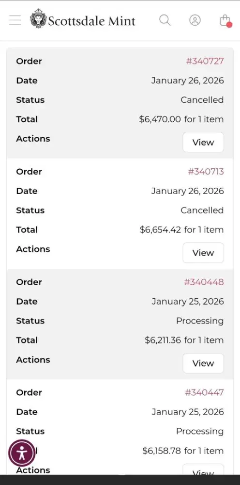 Recommendation: NEVER BUY or SELL USING SCOTTSDALE MINT.