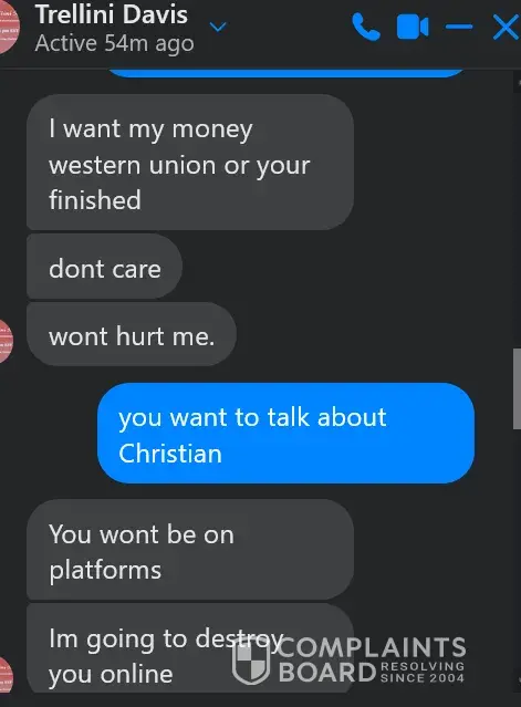 On Saturday February 26th, 2022, The owner of the above is threatening to ruin me on all social media because he wants me to pay for services I did not receive. He sent messages via facebook messenger after I changed my mind about using his services and requested a refund because I just had a strong feeling he was not legitimate after signing a contract digitally that I would pay for his services.