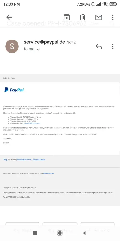 to immediately terminate this agreement and have the funds returned onto my card that I believe has been taken out unlawfully. If you do not respond to this email we will be reporting this to the ACCC in Australia as a scam or a fraud.