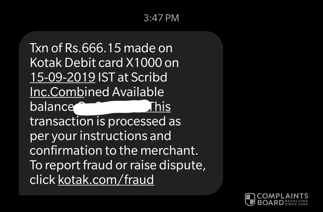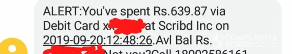 I have no idea how I just got charged for a Scribd Inc membership for INR 666.15 without ever having subscribed to the free trial. Good thing I checked my bank statement. How did you even get access to my debit card info!?