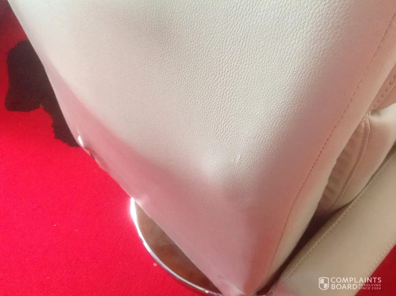 Since then I decided to take my own photos and noticed yet another round bulge had arrived on the back, I realised that's level with the scuff on the other side, and on touching the new round lump I could feel the sharp edge of the frame pushing through, the scuff has the same feel of the frame coming through, I'm not happy at all with this product, it's cost me£650 with extras and I don't accept that a chair costing that much in a sale should look worse than a cheap chair from the charity shop.