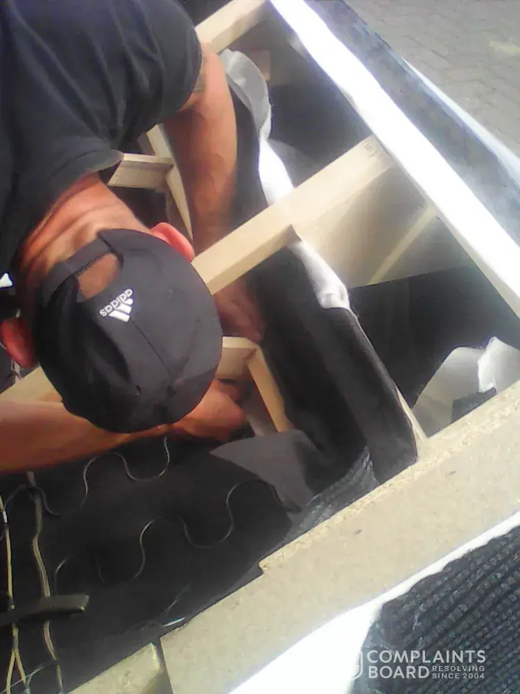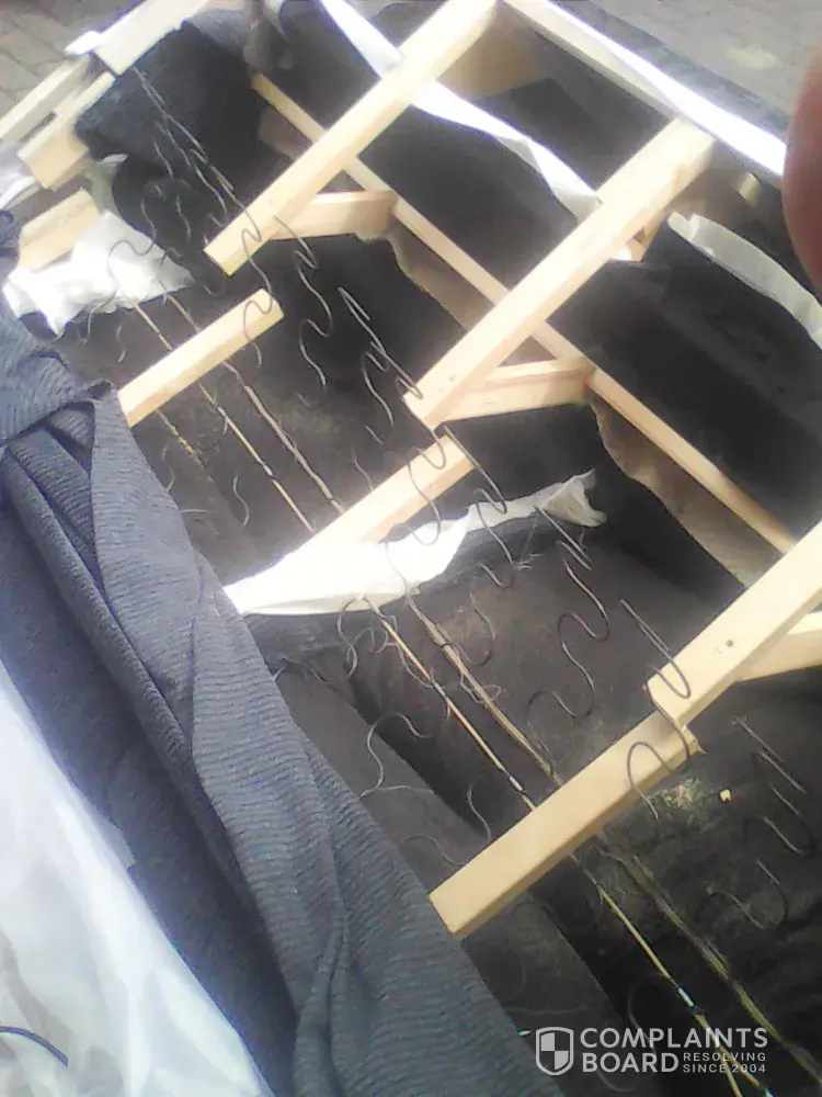 I took the day off work on the Friday to receive delivery and at around 08:00 took a call from the delivery company saying they would be with me in 30 mins. When the lads arrived, I told them that the sofas will be stored in the garage as I have paid someone to attend the next day to take out the window. I then asked to see the sofa which had been repaired, to which I was told "it's ok pal, I shoved another leg in it last night"! So what happened to the technician I was lied to about by the shop? To make matters worse, the sofas were just thrown on top of other sofa's upside down and not in there plastic covers. I noticed a dirty mark on the fabric and also a little tear, so I refused delivery again.