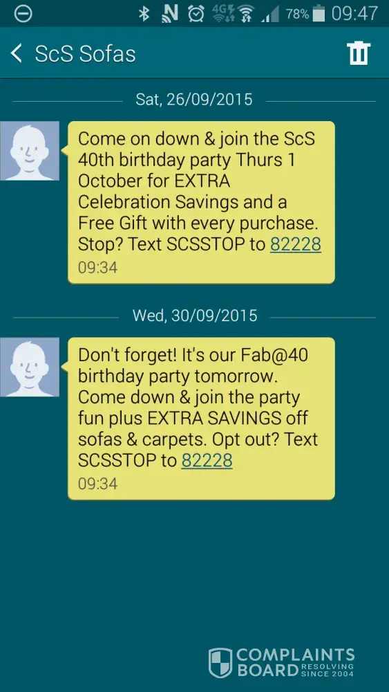 ScS Sofas unsolicited spam text messages to mobile [protected]