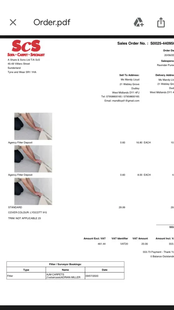 Scs carpet was being delivered and fitted and the carpet fitter offered for him to do it cheaper, he wanted £500 to pay for the carpet up front, I haven't seen him since. How come scs have untrustworthy fitters come into people's home, vulnerable elderly like me, without doing a proper check on these self employed people. I am not the only one to complain, one fitter is wanted by police for assaulting a woman. How can I get my money back without getting attacked.