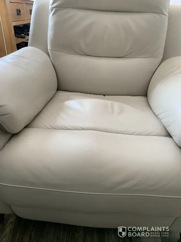 L originally in2017 brought a leather suite which was faulty had it replaced the the second leather suite was faulty had it replaced this takes to december 2019 new leather suite arrives the manual recliner archairs was julting when reclined the man that delivered it said it would wear in in june we turned chair up and found the frame had been rubbing leather and had put a hole in leather reported this to aftercare someone came and inspected it after care are now saying it can only be repaired l said l wanted it replaced but have been told if l do not gree to repair they will close case this chair was faulty when it was delivered to my house l took the word of delivery driver it would wear in aftercare say because l did not report it until june that l can only have it repaired this is third suite l have had from scs l think l should get new armchair with all the trouble over the last 3 years l also think l deserve compensation this is disgusting does not say much about furniture from scs does it please let me know the outcome of this complaint asap anything like furniture it will not be quick the suite l have now is g plan leather