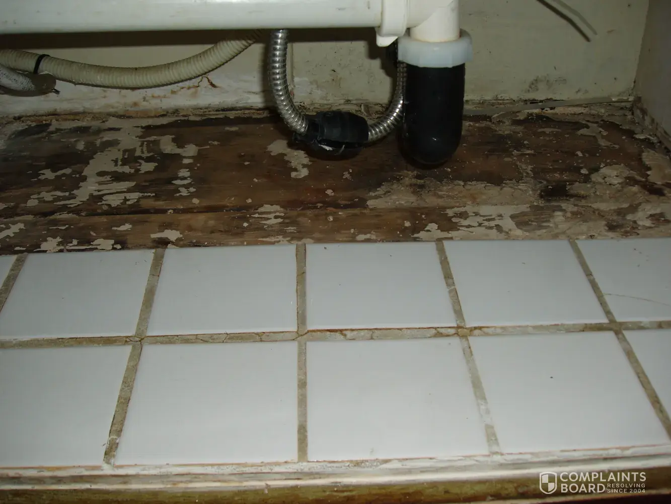 When a Sears Technician hooked up the water dispenser line in 2008, I was not aware that he had not checked his work for a leak! The leak was so small that you could not tell. In addition, it was installed under my sink-the water line and a valve-so that small leak was not noticed. Eventually, I detected an odor coming from beneath my sink on March 29, 2011 and when I removed the items from under the sink, I saw mold and the tiles that were installed under the sink were all loose. When I began to remove them is when I saw how extensive the damage was. At first, I thought I had a plumbing problem so I called my plumber. He could not find a leak until he added some water in the sink and placed a blue pill in the water. When he drained the sink, he showed me where the leak was coming from: The Sears installed hose and valve had a very tiny leak, which is why it took years to notice the damage. Therefore, on March 30, 2011, I called Sears and I reported everything as described above. They scheduled a technician for 4/5/2011 between 8:00 a.m. & 12:00 p.m. He showed up and immediately asked what was wrong with my refrigerator! I said nothing was wrong with my refrigerator and once again explained the problem! From there it all went downhill and I was so unnerved my blood pressure-I nearly 68 yrs. of age with high blood pressure-began to rise so I asked him to leave. I called Sears to complain and eventually after many transfers and always having to repeat my name, address, tel. number and my complaint, I was sent to what they said was the Damage Claim Dept. who seemed to be sympathetic and a lady named Teresa gave me a Claim number 103800 and said that they would call me back in 24-48 hrs. for status. Well that never happened and for two more days I called and eventually wound up in a 'Black Hole' and no one could find the Claim number. I was truly upset; especially after a person by the name of Licio Navas transferred me to dial tone! With that, I called back and cancelled my extended warranty. The proceeds will be use to fix my problems. In addition, yes, I still cannot use my water dispenser and I used a portable heater for over 48 hrs. to dry out the wood-tiles were removed-and walls beneath my sink. Having read about some of the many complaints regarding Sears, I now know I am not alone in realizing how dysfunctional Sears has become-especially their installation, repair and Customer Service A.K.A. Customer Harassment! In the photos, you will see the damage, the bucket of tiles removed, the goop that was removed, the tools that were used and the heater!