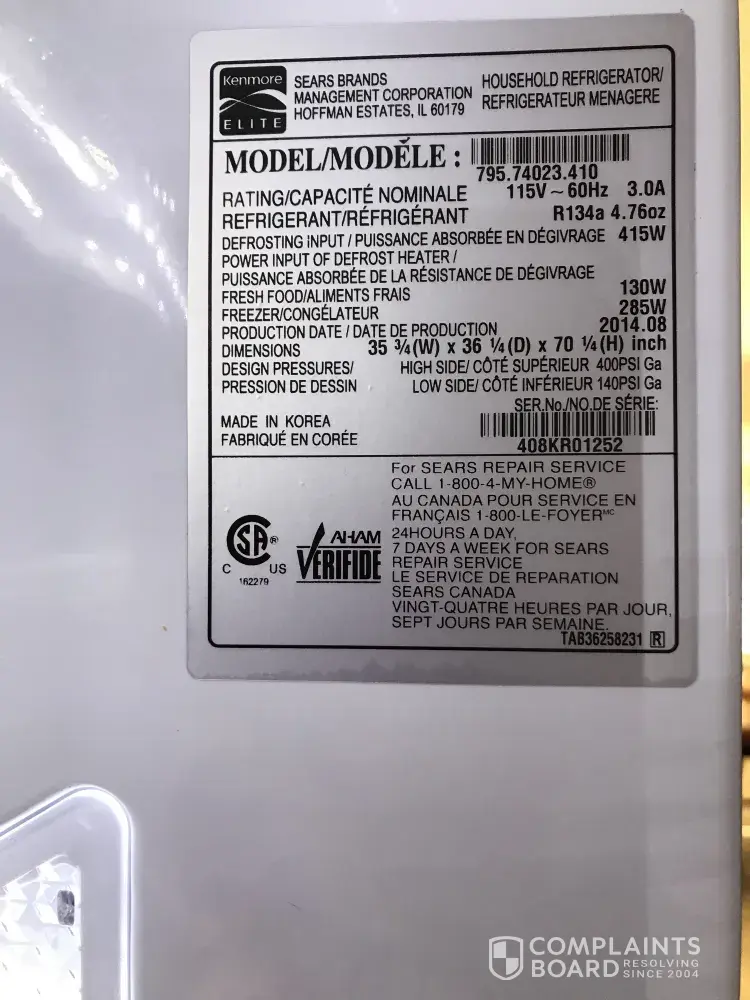 we bought a refrigerator, about 3 years a go, and had a problem, with the ice maker since than .We had sears came, more than 8 times to fix it. All parts were replaced but is still didn't work .On December 3 someone came here here twice, but still couldn't get it to work.
