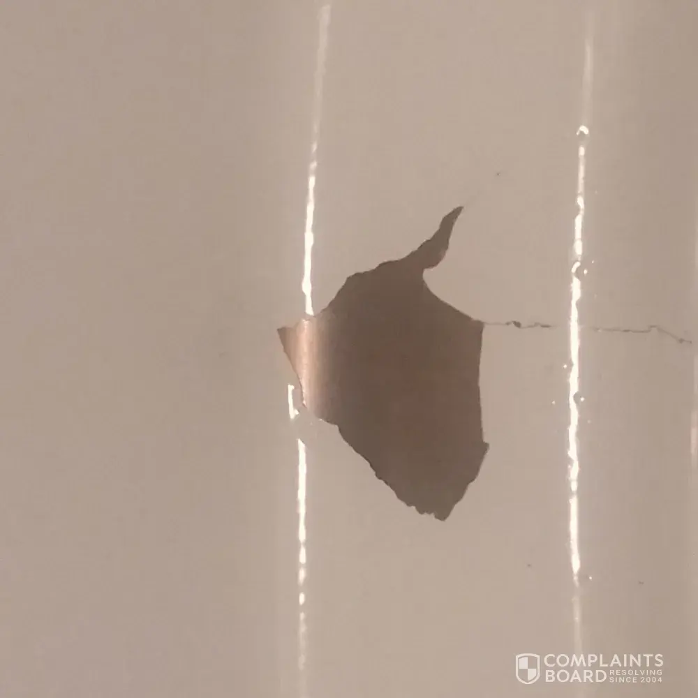 Attached are 3 pictures of the same spot. It is approximately 2" square and looks like it will continue to flake off.