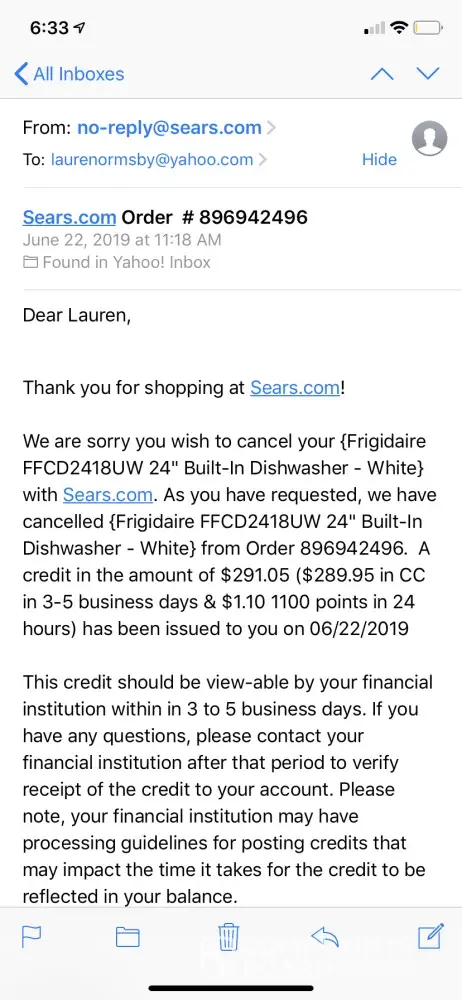 So I contacted Sears again: