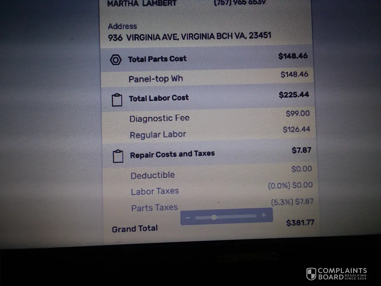 Verified customer This complaint was posted by a verified customer. Learn more