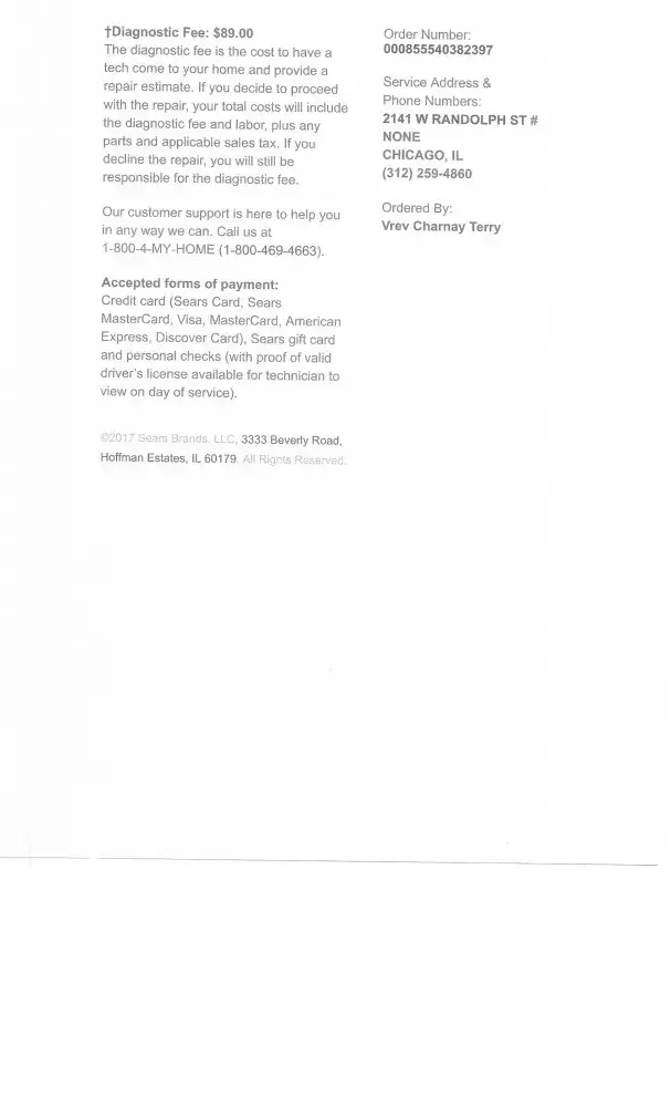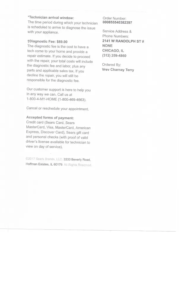 sears home service - diagnostic appointment