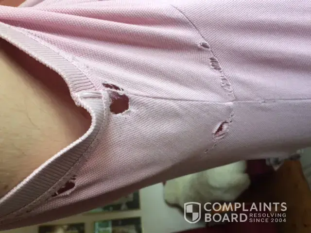 This polo shirt which you see on the pictures was a disappointment. He ordered the shirt about two years ago. After he had used it a few times the seams started to tear. This happened with many seams, especially during this year. The polo shirt has been used in spare time, not during sports.
