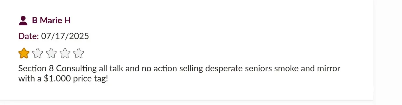 The latest review Section 8 consulting service was posted on Aug 1, 2025.